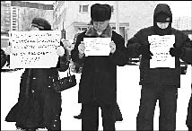 Пикетировали посменно - слишком уж пронзительный ветер гулял по митинговой площадке. Замерзшие уходили греться.
