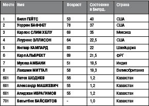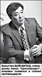 совладельца банка “ЦентрКредит” Бахытбека БАЙСЕИТОВА, который занял 701-е место в списке с состоянием в 1 млрд. долларов.