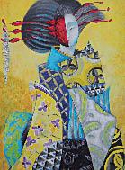 сестер КУСАИНОВЫХ - Галии и Боты (на снимке). Нежное и яркое посвящение Японии.Художниц Кусаиновых вспомнить трудно, но вот дуэт ГАБО (название составлено из первых слогов имен) знаком зрителям хорошо. Именно так подписываются близнецы, хотя их индивидуальный стиль чем дальше, тем сильнее различим. Вот и выставка “Сад сакуры”: у Боты - цветы, натюрморты и типичные персонажи Страны восходящего солнца в приглушенных тонах, словно спрятанные в конструкциях из орнамента. Зато у Галии это свет и песня, яркие образы театра кабуки, соблазнительные гейши - и никаких усложнений. Тему Японии сестры отрабатывали в течение года, с тех пор как провели там три недели по приглашению ассоциации глухих художников Юго-Восточной Азии.