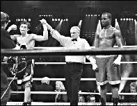 Геннадия ГОЛОВКИНА (на снимке слева), выступающего в среднем весе (76 кг)!На вечере бокса в Крефельде (Германия) в поединке, рассчитанном на 10 раундов, наш боксер нокаутировал своего соперника из США Энтони ГРИНИДЖА уже в пятом. Первоначально оппонентом Головкина в этом бою должен был быть другой американец - Тарвис СИММС, однако за несколько дней до боя он неожиданно отказался и был заменен на Гриниджа. На предварительном взвешивании этот файтер оказался тяжелее Геннадия на 800 граммов, но это не помешало казахстанцу уже в первом раунде дважды отправить соперника в нокдаун, а в пятом праздновать “чистую” победу, которая у нашего земляка - 16-я подряд.