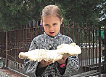 На снимке: больше всего обрадовалась “грибам из царства великанов” внучка Олега Катенька.