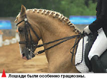 Для выездки подходят далеко не все породы лошадей. Здесь специально отбирают животных с устойчивой психикой и спокойным характером, отличной мышечной силой и резвостью. Такими качествами обладают европейские лошади, в частности немецкие, на которых и выступают казахстан-ские спортсмены. На чемпионате лошади и их всадники поражали своей грацией. Зрители с восхищением наблюдали за их выверенными движениями. Вот лошадь красиво пошла боком, тут же перешла на аллюр, затем на собранную рысь или зигзагообразное движение по диагонали. А во время выполнения пассажа наступил момент явного “подвисания”: казалось, что лошадь движется в замедленном темпе.