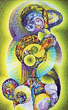 В Москве Бахтыбек кроме обязательных дисциплин тоже занимался изучением орнаментов разных народов. В числе прочего обнаружил духовное сродство казахов и индейцев. Потом был долгий путь и то, что художник называет открывшейся истиной: если орнамент - знаки, приходящие свыше, своего рода канал общения с Творцом, то почему к этому каналу не подключатся все желающие? Так постепенно была создана методика психореабилитации через свободное творчество.Картины Талкамбаева действительно гипнотизируют - яркие цвета, фантастическое сплетение орнаментов, выпуклые, как бусины, бугорки красок, геометрия лучей и спиралей. Профессиональные искусствоведы морщатся - пестро, грубовато... Зато зрители с удовольствием вглядываются в поисках исцеления и тайного смысла.