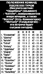 В воскресенье состоялись пять матчей 22-го тура чемпионата страны по футболу среди команд премьер-лиги.За несколько дней до этого в ФК “Казахмыс” (Сатпаев) ушел уже третий по счету за сезон наставник. Пока не известно, кто возглавит команду вместо подавшего в отставку Павла АРЕФЬЕВА. Теперь уже бывшие его подопечные были разгромлены в Таразе местным клубом со счетом 5:0. Приводим результаты других матчей: “Атырау” - “Локомотив” (Астана) - 1:2, “Кызылжар” (Петропавловск) - “Тобол” (Костанай) - 0:7, “Окжетпес” (Кокшетау) - “Шахтер” (Караганда) - 0:5, “Иртыш” (Павлодар) - “Кайсар” (Кызылорда) - 1:0.