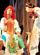 C точки зрения клинической режиссуры антреприза Горшкова - типичный капуст-ник, изобилующий разными “придумками”. Он сыроват, поскольку для репетиций физически не хватило времени, а оттягивать премьеру не хотели. Но у него есть все шансы на жизнь. Чего стоит один только кураж артистов! Кстати, это не только звезды Лермонтовки вроде Горшкова и УФИМЦЕВА, но и известный мим Сергей ЧЕРВЯКОВ. Вся компания напоминает детей, дорвавшихся до сладкого: банальный голод по сцене и шалостям - извечная кара актера. Аплодисментов заслуживает изобретательность в изображении эротических сцен, которыми у Боккаччо завершается любая история. Например, монах и девица, с характерными стонами пилящие полено. Вторая фишка - костюмы. Это трико, блестящие стринги (для тех же эротических сцен), камзолы и рубашки, которые действительно легким движением руки превращаются в платья, украшенные обнаженными женскими фигурами. Не будь это так уморительно - это было бы пошло. Но самое подкупающее - наслаждение, с которым бородатые дядьки изображают женщин, таких загадочных, манящих, непонятных и соблазнительных. В какой-то момент не без грусти понимаешь - дама на этой сцене только помешала бы мужским играм. Впрочем, она появляется в начале и в конце, чтобы исполнить гимн любви.