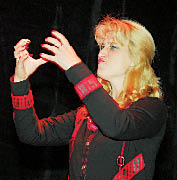 Репетиции в этом театре начинаются с перевода. Режиссер подбирает репертуар, потом сурдопереводчик перекладывает текст на язык жестов. Мостик между слышащим режиссером и глухими артистами - Татьяна ГОЛОВЧЕНКО (на снимке). Она хоть и плохо, но все же слышит, ходит со слуховым аппаратом и прекрасно знает язык жестов.