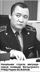 начальник отдела миграционной полиции Жетысуского РУВД Раджи ЕСЖАНОВ. -