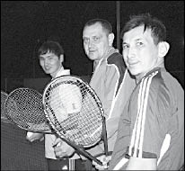 В облакимате решили приобщить жамбылцев к теннису. Для этого были выстроены 6 кортов с хардовым покрытием, но в любом деле главное - личный пример, поэтому теннис был включен в программу спартакиады госслужащих.И не важно, что практически никто из работников акиматов и их управлений никогда не держал в руках ракетки. В вышедших на корт чиновниках проснулась неукротимая жажда победы, и потому рубились дяденьки и тетеньки не по-детски! Кстати, в состязаниях принял участие олимпийский чемпион по боксу Бахтияр АРТАЕВ (на снимке - крайний слева) - ныне аким Айша-Бибинского сельского округа Жамбылского района. Правда, в новом для него виде спорта обладатель кубка Баркера оказался всего лишь третьим, уступив начальникам Таласского районного и областного управлений по физкультуре и спорту Еркену МАМАДИЯРОВУ и Андрею САВЧЕНКО.