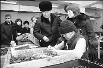 аким Алматинской области Серик УМБЕТОВ. Прибыл он не с пустыми руками - с подарками и обещаниями помочь комбинату выйти из кризиса.Первым делом главу области повели показать общежитие, в котором живут инвалиды по зрению. Маленькие комнатушки служат домочадцам и спальней, и кухней, и залом. При этом в здании нет никаких условий: туалет на улице, помещения отапливаются электрообогревателями, еду готовят на газовых баллонах, которые стоят тут же. Затем Серик Абикенович побывал в цехе сборки прищепок, где держал ответ перед народом.