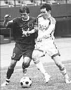 Владимира МУХАНОВА.Теперь же казанцам представился шанс реабилитировать себя перед поклонниками и выиграть трофей дублирующим составом. “Рубин” не преминул этим воспользоваться и разгромил чемпионов нашей страны. И если при счете 3:2 в пользу казанцев у “Актобе” была возможность хотя бы сравнять счет (мячи у наших забили Титти ЭССОМБА и Эмиль КЕНЖИСАРИЕВ, (на снимке справа), то после сомнительного пенальти в наши ворота и ее не осталось. К тому же за разговоры с судьей с поля был удален Улугбек АСАНБАЕВ.