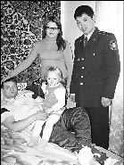 оперативник УВД Рудного Азамат ГАЙСИН женщине, которая металась в объятой пожаром квартире на втором этаже хрущевки...Полицейский поймал годовалую Сашу ТУЗОВУ. Девочка не получила и царапины. А на земле в это время лежал ее отец. Спасаясь от огня, он выпрыгнул из окна и сильно повредил ноги. Мать, Екатерина ТУЗОВА, продолжала кричать - выйти из квартиры она не могла, огонь преградил дорогу. Опер увидел рядом с окном кондиционер и заставил женщину перебраться на прибор. Затем вызвал пожарных. Все это случилось в ночь на субботу. А на днях семейство Тузовых уже благодарило полицейского, так кстати проходившего ночью мимо их дома.