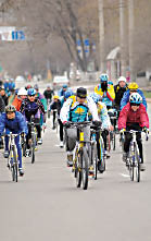 В воскресенье, 11 апреля, власти Алматы открыли городской велосезон 2010 года.Несмотря на довольно прохладную погоду, на открытие сезона съехались более сотни владельцев двухколесных коней. Уже перед стартом выяснилось: ни акима Алматы Ахметжана ЕСИМОВА, ни его заместителей велолюбители не увидят. Зато крутить педали вместо шефов вызвалась единственная в южной столице женщина - аким Бостандыкского района Зауреш АМАНЖОЛОВА.