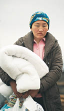 Не утонули - теперь бы не замерзнутьШок от потери близких у сельчан уже проходит, горе сменяют житейские заботы. В ожидании заселения в новые дома большинство местных жителей разместились в палаточном городке. Лишь несколько семей предпочли наспех сколоченные времянки. О благах цивилизации пока остается только мечтать. Правда, недавно к палаткам провели электричество - в каждой горит лампочка Ильича, а вот розеток для пользования бытовой техникой нет. Впрочем, сейчас основная забота сельчан - не замерзнуть: уголь, по их словам, привозят с перебоями. Топливо для буржуек расхватывают в считаные минуты, а те, кому его не достается, собирают по округе все, что горит.