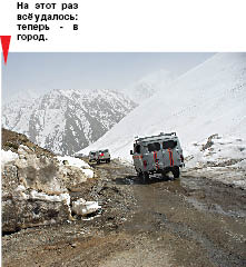 Подпрыгивая и кренясь на ухабах высокогорной дороги, серые “уазики” медленно преодолевают подъемы. Скованное льдом озеро в обрамлении вековых тянь-шаньских елей остается позади. Наконец, миновав последний трехкилометровый отрезок пути, добираемся до места назначения.