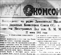 “Комсомольская правда”, датированный 24 июня 1941 года,