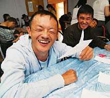 - Сижу дома, иногда хожу в спортзал, - рассказывает парень уже после того, как его батик был закончен. - Четвертый год занимаюсь на тренажерах. Штангу тягаю, мой рекорд - 17 килограммов в жиме лежа. Я вообще стараюсь не комплексовать. Здесь у нас проводят дискотеки, выхожу и танцую, мне по фигу, кто что подумает. Главное - хорошенько повеселиться.