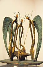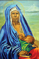 “религиозная живопись”. Библейская тема в Центральном выставочном зале южной столицы была не только отменно представлена авторами, но и запредельно ими оценена. “Мадонну” с афроамериканскими чертами лица и негроидным младенцем (на правом снимке), разноцветные кляксы, носящие название “Мой ангел”, продолговатого инопланетянина можно было приобрести “всего” за 10 тысяч долларов.