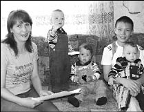 Наталья ЖАДЕЕВА - мама полуторагодовалых тройняшек Руслана, Олежки и Игорька и 12-летнего Славика (кстати, круглого отличника в школе и чемпиона по плаванию). Жадеевы получили трехкомнатную квартиру!О бедственном положении семьи, ютящейся в крохотном бабушкином домике, и равнодушии местных властей, занимавшихся отписками, наша газета уже писала (см. “Воспитывайте сами!”, “Время” от 5.11.