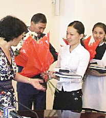 - Спасибо вам, наши хорошие! И чтобы ваши родители не болели и гордились вами! - не скрывая радости и волнения, сказала на брифинге замакима Актюбинской области Сара НУРКАТОВА, обращаясь к “золотым” девочкам. - Мы заложили 130 миллионов тенге на поощрение самой лучшей школы по итогам ЕНТ, лучшего учителя и лучших выпускников. Если помните, в прошлом году выпускнику, набравшему наивысший балл - 124, мы подарили машину. Так что и вас поощрим. Посоветуемся с акимом, и подарок вам будет не хуже прошлогоднего.