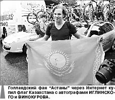 В Голландии рядом с клубным автобусом я познакомился с местным поклонником “астанчан” Руудом, который несколько лет назад начал симпатизировать нашей команде, приобрел через Интернет флаг Казахстана с автографами Максима ИГЛИНСКОГО и Александра Винокурова и теперь появляется везде, где выступает “Астана”.