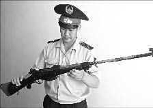 Сотрудники отдела по борьбе с экстремизмом ДВД Северо-Казахстанской области 16 июля изъяли у 45-летнего жителя Петропавловска весьма необычную французскую винтовку 45-го калибра, выпущенную 103 года назад.Как рассказал сотрудник пресс-службы областного ДВД Спартак КАБДЕНОВ (на снимке), такого чуда оружейного искусства североказахстанским стражам порядка прежде в руках держать не приходилось.