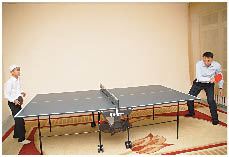 Выяснилось, что и акиму есть чему поучиться у ребят - решив сыграть с ними в пинг-понг, он проиграл юному спортсмену Саламату ЗАЙНУЛЛИНУ (на снимке).