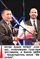 Диплом “Особое событие” от дирекции VI МКФ “Евразия” ушел китайскому фильму “Гульбике” режиссера Ершата ЯХФУ, снятому казахской диаспорой Синьцзяна. Ну и, наконец, приз от дирекции VI МКФ “Евразия” “За вклад в мировой кинематограф” вручили известному голливудскому актеру, режиссеру и музыканту Кевину КОСТНЕРУ.