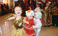 Тысячу подарков от посольства России получили в эти святочные дни таразские ребятишки. Большая часть пакетов со сладостями была роздана на рождественских елках, проведенных Русской общиной Тараза в минувшую субботу - на следующий день после Рождества Христова.В этот день маленьких гостей встречал вместе с Дедом Морозом и Снегурочкой настоятель Успенского храма отец ГЕОРГИЙ, поведавший детям о великом чуде рождения на земле живого Бога и пожелавший им хорошей учебы и послушания. А потом были веселые хороводы, игры и танцы со сказочными персонажами. Когда же из волшебного мешка доброй феи вылез самый настоящий живой кролик, мальчишки и девчонки просто онемели от восторга!