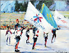 У Кульбатырова воедино сливается небесное и земное, от необозримости пространства на его картинках порой захватывает дух. Кажется, будто прогуливаешься по давно знакомым местам вместе с добрым старым приятелем.- В юности я занимался боксом, - признался автор экспозиции. - Даже был призером первенства города. Правда, потом пришлось бросить ринг, ведь для художника руки - рабочий инструмент. Но спортивной теме в своих работах я уделяю большое внимание. Часто бываю на Чимбулаке, Медео, где черпаю сюжеты для будущих картин. На Азиаде буду болеть за всех наших спортсменов, но особенно за летающих лыжников - прыгунов с трамплина. Очень нравится мне этот вид спорта! Я много рисую конный спорт - кокпар, скачки, байгу, жорга-жарыс, кыз-куу. Писать это акварелью очень сложно - зато конечный результат радует воздушностью и изяществом. Художники, как и спортсмены, радуются своим победам. Только вот медалей нам не дают…