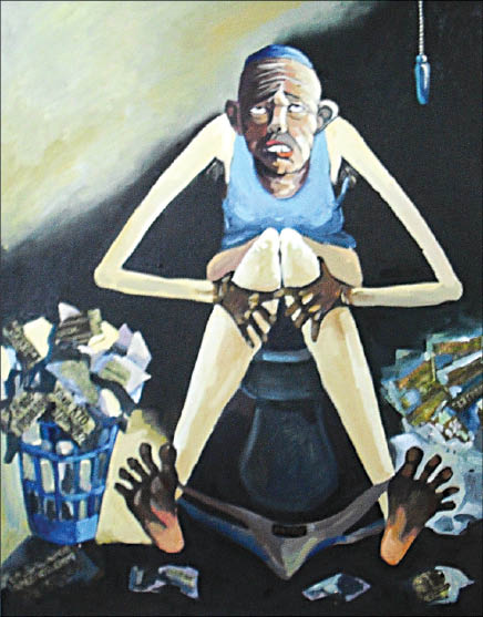 Вот, например, “Геморрой” - о человеке, который сидит на унитазе, тужится и никак не может выдавить из себя раба.