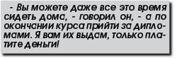 P. S. По словам руководителя пресс-службы облпрокуратуры Бауржана АХМЕТОВА, после нашего обращения в этот колледж уже послана серьезная проверка. Между тем прокуратура совсем недавно изучала деятельность средних специальных учебных заведений и обнаружила вопиющие нарушения законности. Так, в Шуском железнодорожном колледже физкультуру преподает специалист по локомотивам и вагонам, а физику - телемеханик и связист. В Таразском гуманитарно-техническом и Жамбылском многоотраслевом колледже “Аулие-Ата” количество штатных преподавателей сведено к минимуму, а в Казбизнесколледже их и вовсе нет! Ну а в Жамбылском колледже экономики и права нет не только педагогов, но самих учащихся - там числятся только заочники. Колледжи “Оркениет” и “Бакдаулет”, готовящие специалистов по физкультуре и спорту, не имеют… спортзалов. А уж медпункты и столовые повсеместно - “недопустимая роскошь”. Жамбылский и Таразский политехнические колледжи преспокойно обучают специальностям, на которые не имеют лицензий, а второй умудряется еще и сдавать свои площади под офисы частным структурам - при том что не хватает помещений для занятий. В общем, прокуроры сделали безотрадный вывод: “В большинстве случаев учебные заведения, в особенности частной формы собственности, преследуя цели получения прибыли, забывают о своем прямом предназначении - давать гражданам качественное и доступное образование”.