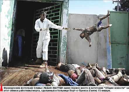 Вместе с девушкой без носа среди победителей оказались горящий самоубийца, прыгнувший с башни в Будапеште, отравленная ядом маленькая вьетнамка и девушка, делающая автопортрет “мыльницей” для социальной сети. Манекенщицам и лебедям места не осталось - награды получили фотографы, которые работали во время землетрясений на Гаити и в Китае, освещали войны наркокартелей в Мексике или, в крайнем случае, фотографировали нефть в Мексиканском заливе.