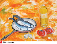 Впрочем, сакральность рыбы ни в коей мере не портит ее вкуса. Трудно сравнивать духовную пищу и обычную, но факт налицо - полные желудки существенно облегчили восприятие самых сложных композиций. Зрители облизывали пальчики и, разглядывая работы, вместо эстетского вина лакировали ощущение брутальным пивом. Тут уже можно было и пофилософствовать, вспомнить высказывание Льва ЛОСЕВА о том, что и стихи, и кулинарные книги читаются для того, чтобы получить эстетическое переживание приобщения к культуре. И о том, что вся наша жизнь балансирует на грани метафизики и обыденности, между священными и поваренными книгами, между молитвами и тостами. Что на кухне происходят и трапезы, и самые важные разговоры. Можно вспомнить натюрморты МАШКОВА, аппетитную селедочку ПЕТРОВА-ВОДКИНА, многозначительных рыб ШАГАЛА. Одним словом, уходить не хотелось.
