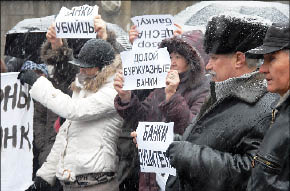 В среду члены общественного объединения “Оставим народу жилье!” пикетировали в Алматы “Цеснабанк” и БТА Банк. Активисты требовали прекратить давление на неплатежеспособных заемщиков и остановить практику массовой подачи в суд с последующим изъятием залогового жилья.