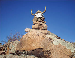 - На самом деле все намного проще, - улыбается краевед. - Это межевой знак. Таким образом местные жители помечают границы своих участков. Кстати, по древним поверьям черепа животных воспринимались как вместилища души. Их обязательно помещали на какое-то возвышение. Было абсолютно недопустимо попирать их ногами. Отголоски этого архаичного представления мы найдем в летописной легенде о князе Олеге, опрометчиво ступившем на череп своего верного скакуна.