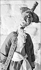 Все кукольники утверждают: игрушка оживает именно в тот момент, когда у нее на лице появляются глаза. После этого она может “воспротивиться” облачению в приготовленный для нее костюм, и его придется переделывать. Словом, вместе с глазами формируется характер. Например, заяц Эдвард у Натальи “прогулял” две выставки - в Питере и алматинской галерее: под разными предлогами он оставался на столе мастерицы и позволил закончить себя только в марте. Зато кот с длинным и поэтичным названием “Гроза птиц, рыб и кошачьих сердец” получился очень быстро.