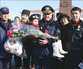 - Посмотрите, какую замечательную жизнь он спас! - с этими словами вице-министр поднял на руки шестилетнюю Аяжан КВАНЫШБАЕВУ.