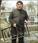 Директор ТОО “Ритуальные услуги” Кадырхан АБДУЛЛАЕВ (на снимке) на днях лично задержал вора, пытавшегося вынести с кладбища “зеленый ковер” 11 могильных оградок и передал злодея полиции. Однако не прошло и трех дней, как задержанный “воскрес” на погосте и снова высматривал, чем поживиться…