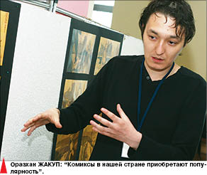 - Сегодня наши дети играют в Человека-паука, в Наруто, - говорит организатор выставки Оразхан ЖАКУП. - У нас нет своих казахстанских героев. Поэтому мы придумали комикс “Ертегi” - историю о невоспитанном молодом человеке. Однажды он нахамил на улице старушке, которая оказалась Бабой-ягой. В отместку она проклинает юношу, и он попадает в другой мир, где с ним происходят разные приключения, встречи с персонажами казахской мифологии. Главный герой встречает Ертостика и начинает узнавать историю своего народа, благодаря чему и перестает быть хамом и невеждой. К сожалению, в нашей стране не заинтересовались созданием такого комикса, а вот французы оценили нашу идею и хотят издать эту историю у себя.