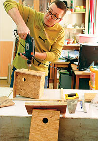 - Если у вас есть собственный дом, очень полезно расположить скворечник рядом с огородом, - говорит сотрудник музея Руслан ТЕЛЕГИН. - Пока синицы выведут потомство, они помогут вам уничтожить вредителей, а это лучше, чем удобрять землю химикатами!