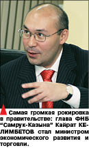 Кроме того, вчера же своим указом Н. Назарбаев назначил Кайрата КЕЛИМБЕТОВА министром экономического развития и торговли, освободив от должности председателя правления фонда национального благосостояния “Самрук-Казына”.