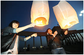 Уже придуман символ “своего” праздника - бумажные фонарики, которые во многих странах Азии издавна считаются средством для передачи Небу своих заветных желаний. Вчера десятки таких фонариков взмыли ввысь.
