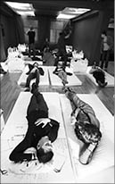 Необычная фотовыставка открылась в минувшую субботу в Алматы. До 22 апреля все желающие могут прийти в зал танцтеатра сестер Габбасовых и... улечься на маты, чтобы увидеть действительность.