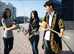 - Согласно легенде именно в апреле скончались герои казахской поэмы XIII-XV веков, - объясняет председатель общественного объединения “Молодежь за здоровый образ жизни” Дамир НУРКЕНОВ. - Поэтому мы решили, что именно Козы-Корпеш и его возлюбленная должны стать символом нашего праздника влюбленных.