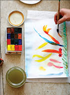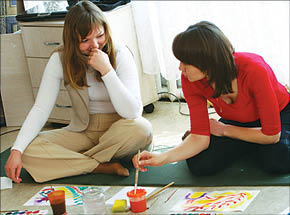 Мы сели на пол, выбрали себе кисти и краски и принялись за дело. Сначала Мария дала нам волю. Нужно было просто выплеснуть свои эмоции на бумагу. Бездумно, по наитию, не придираясь к тому, что и как получилось. Мы же пытались нарисовать так, чтобы было красиво.