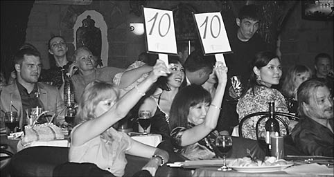 Между выступлениями конкурсантов зрители увидели лучшие номера от эротических коллективов. "Дамский угодник" устроил настоящую баню одной из зрительниц, а "Сейшн" показал высокохудожественную оргию в стиле маркиза де Сада. Зачет.