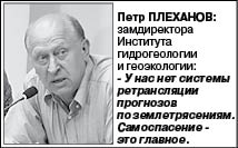 А у нас свой, новаторский метод. С одной стороны, строители не тратят лишние средства на возведение сейсмозащищенных зданий, поскольку они гораздо дороже. С другой - никто не заморачивается на развертывании современной сети наблюдательных точек. С третьей - даже если всех предупредить, из города никто не выедет: все основные транспортные артерии будут мгновенно парализованы. Эту информацию подтвердил замначальника алматинского департамента по ЧС Юрий ИЛЬИН. Департамент вроде бы написал в прокуратуру и та должна разобраться, почему строят за "красной линией", выделяют не по теме земельные участки и так далее (виноватым, видимо, признают бывшего акима Алматы ХРАПУНОВА).