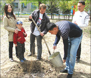 Несмотря на запрет акимата, азатовцы - на свой страх и риск - пришли к скверику всей группой, и высадка деревьев состоялась.