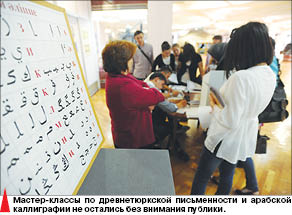 Не остались без внимания публики и мастер-классы по древнетюркской письменности и арабской каллиграфии. Народ с интересом смотрел, как писцы выводили замысловатые буквы на бумаге, и наперебой заказывал собственные имена на арабском.