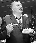 Лидер ЛДПР Владимир ЖИРИНОВСКИЙ (на снимке) в своем видеообращении, снятом во время застолья, переведя разговор “на политический язык” и обращаясь к “Диме”, сказал, что России нужна консервативная политика, а не модернизация, заявленная в качестве ведущей темы президентом страны Дмитрием МЕДВЕДЕВЫМ.